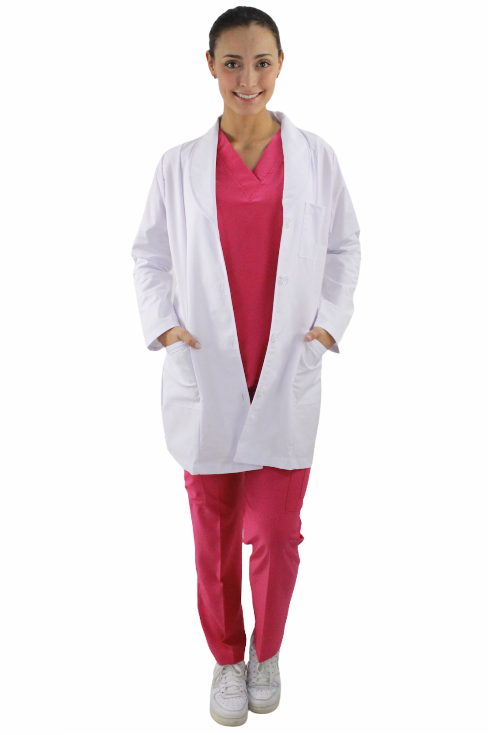 Cuenta con 2 bolsillos en la parte delantera inferior y 1 bolsillo en la parte delantera superior, elaborada con tela de poliéster algodón y elastano que le proporciona stretch para mayor comodidad y un mejor ajuste, adicionada con pinzas para realzar tu figura, cuenta con abertura en la parte trasera.