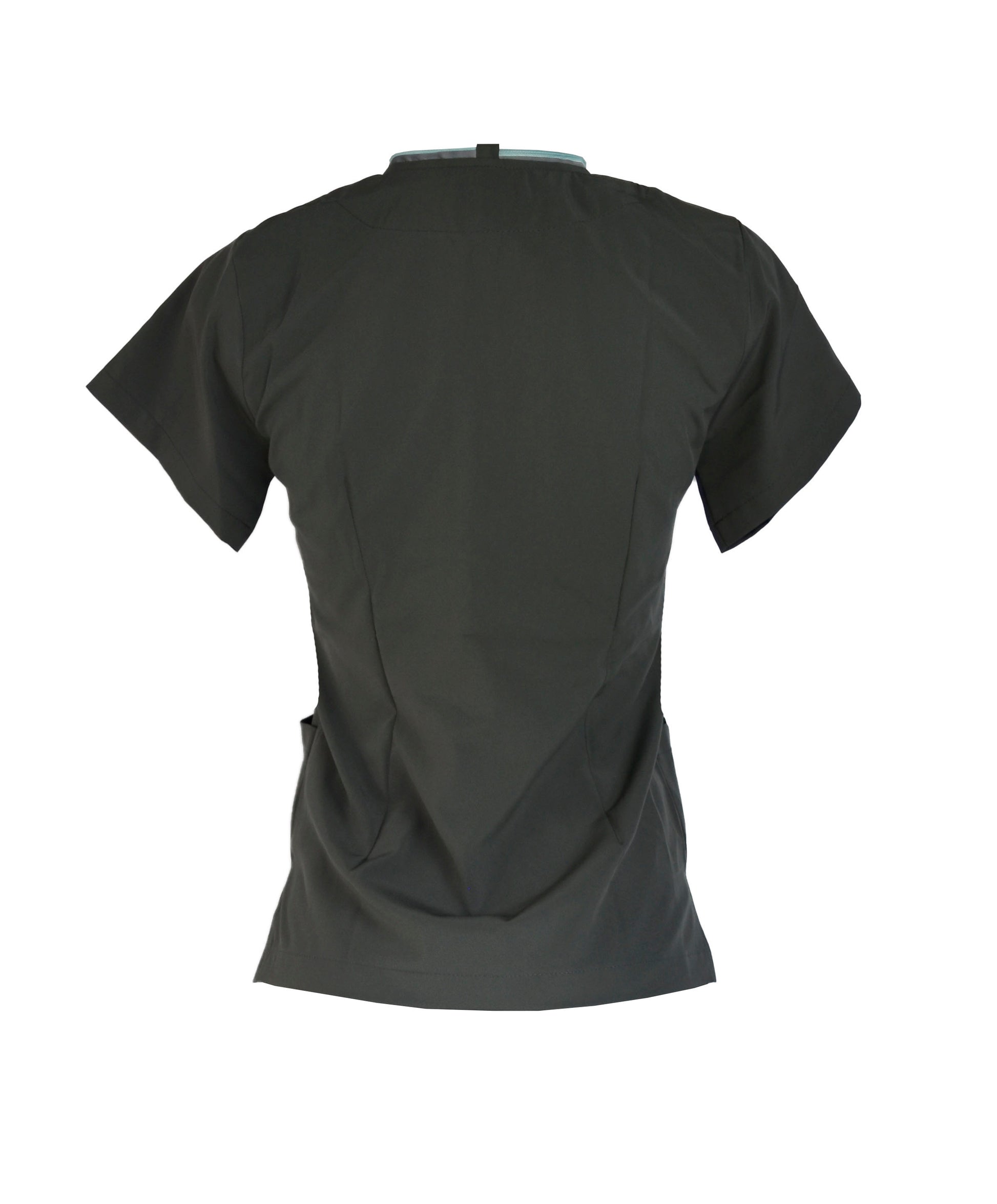 Filipina cuello en V con 2 bolsas en la parte delantera, aberturas en los costados para facilidad de movimiento