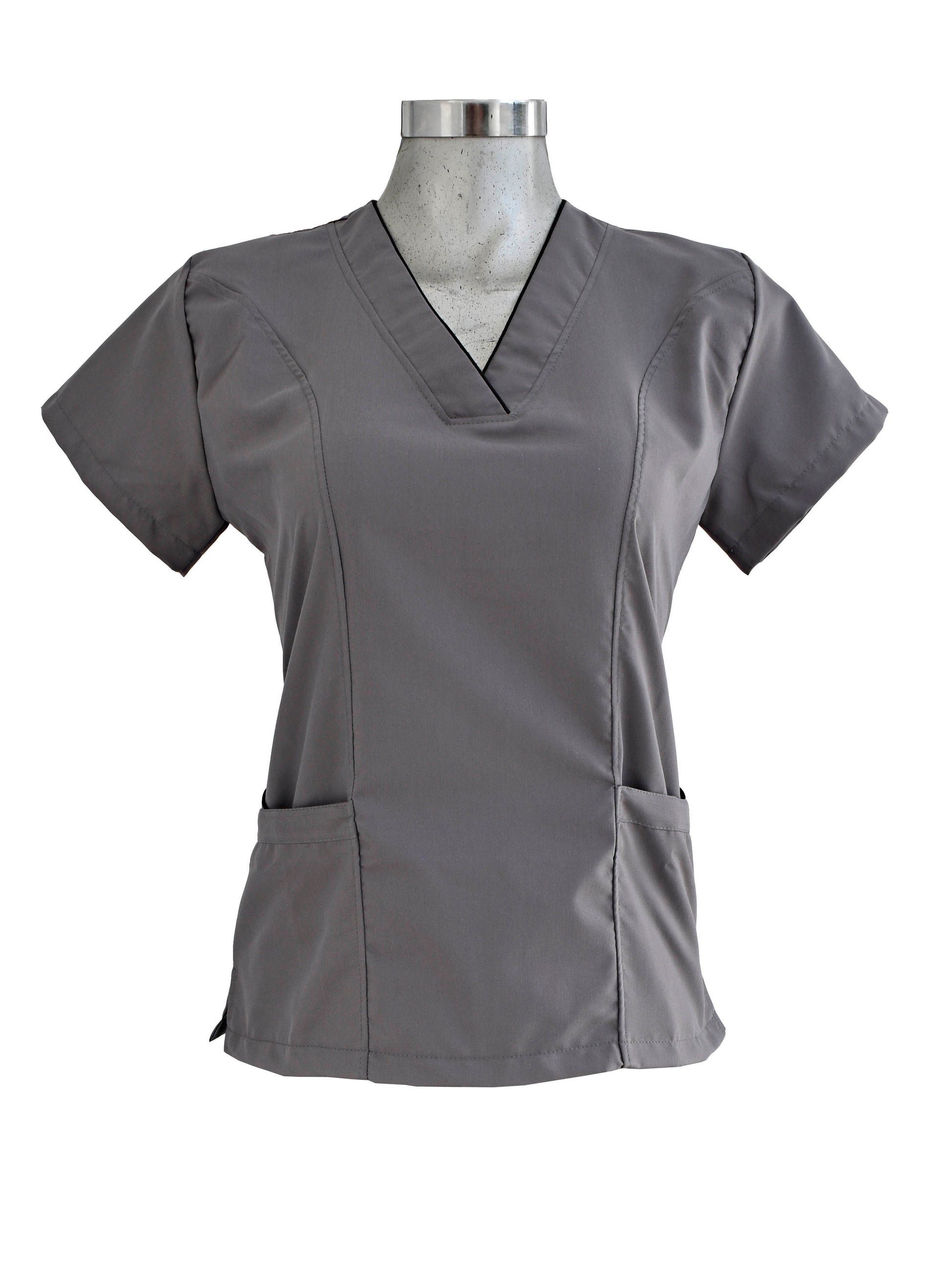 Filipina corte slim fit con escote en "V" con vivos de color en cuello y bolsas, cuenta con 4 bolsas en la parte delantera, aberturas en los costados para facilidad de movimiento, tiene 2 pinzas en la parte de la espalda para brindar un mejor ajuste.
