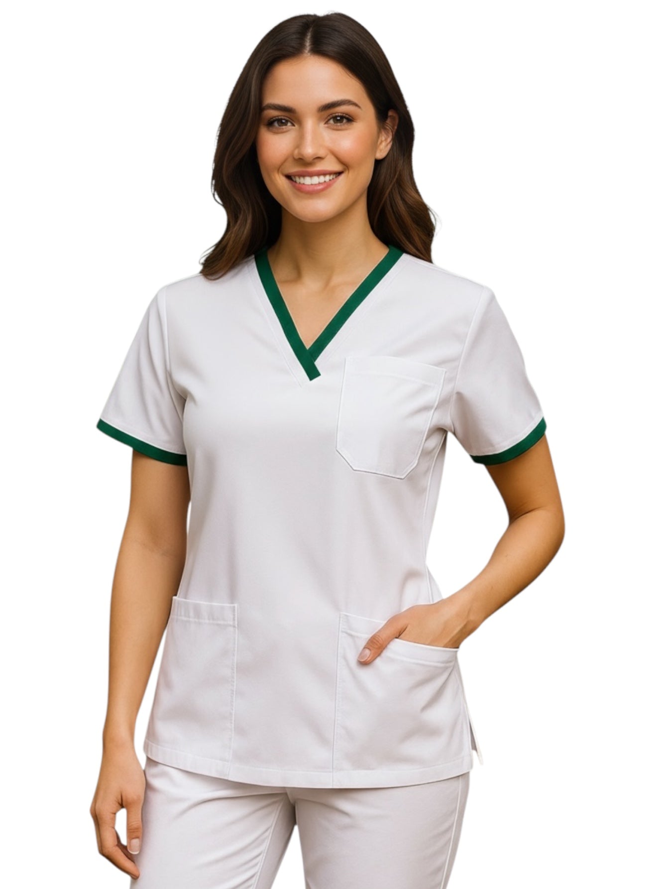 Filipina en cuello "V" con 3 bolsillos en la parte de enfrente (2 en los costados, 1 en el área del pecho).