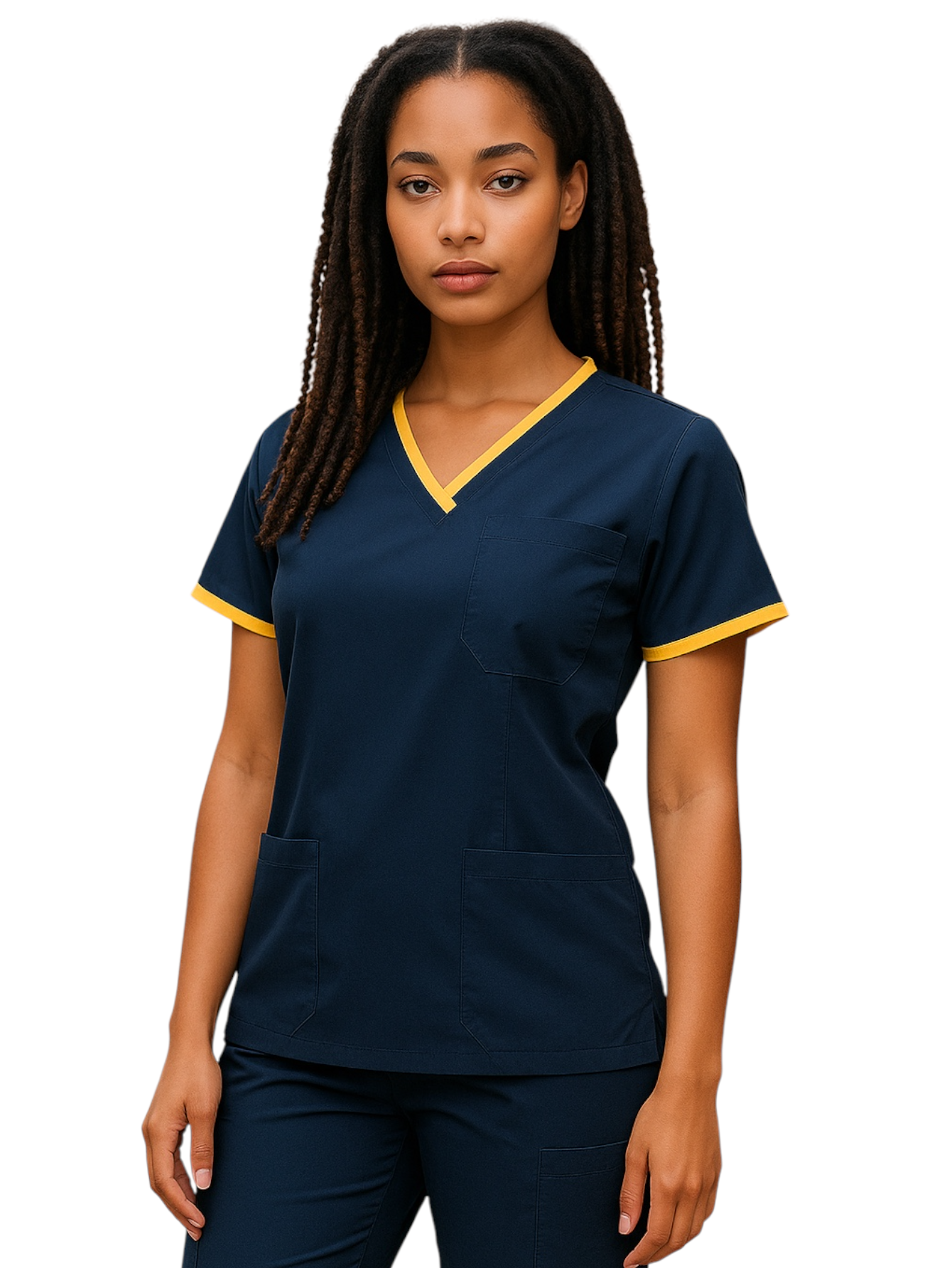 Filipina en cuello "V" con 3 bolsillos en la parte de enfrente (2 en los costados, 1 en el área del pecho).