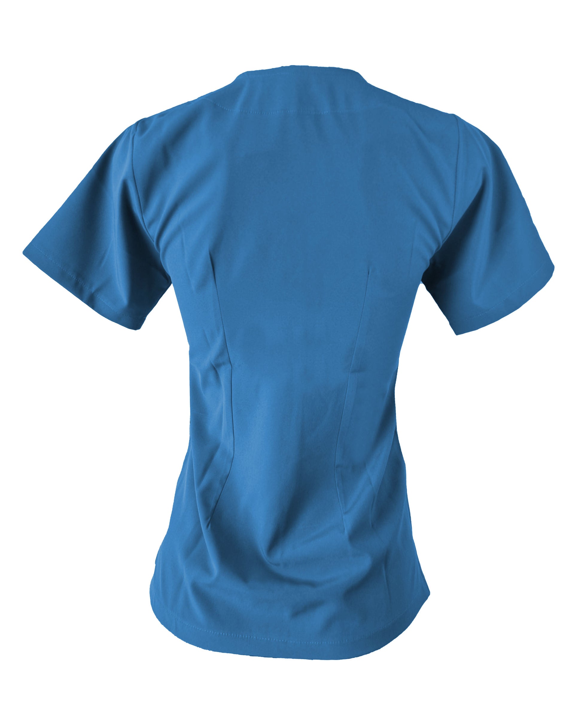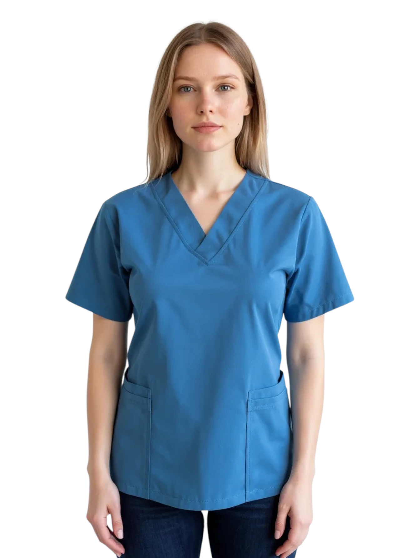 Filipina cuello en V con 4 bolsas en la parte delantera, aberturas en los costados para facilidad de movimiento