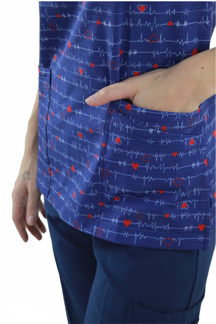 Filipina cuello en V con 4 bolsas en la parte delantera, aberturas en los costados para facilidad de movimiento y jareta en la espalda para un mejor ajuste.