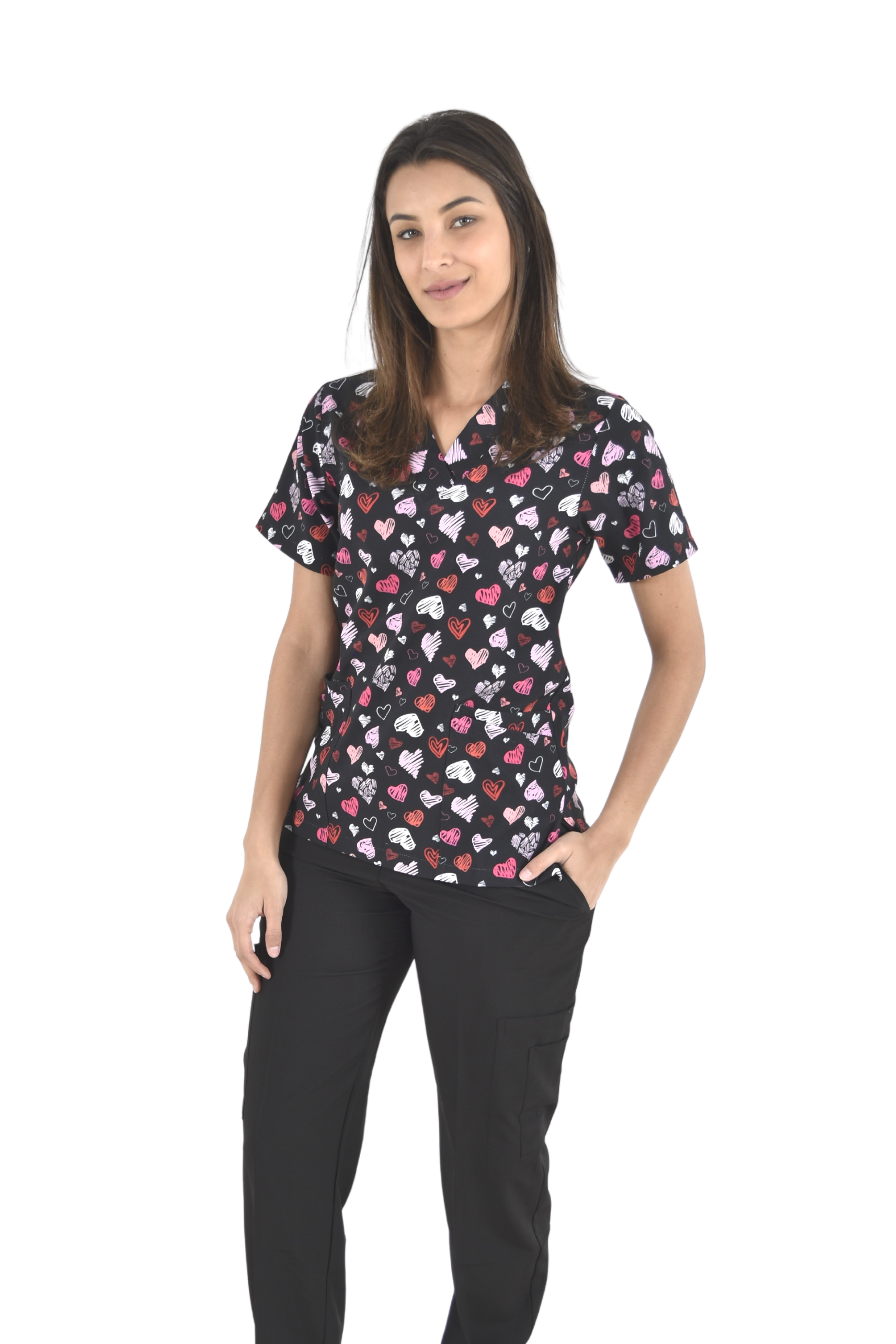 Filipina Médica Dama Tania Negro Corazones Rosas