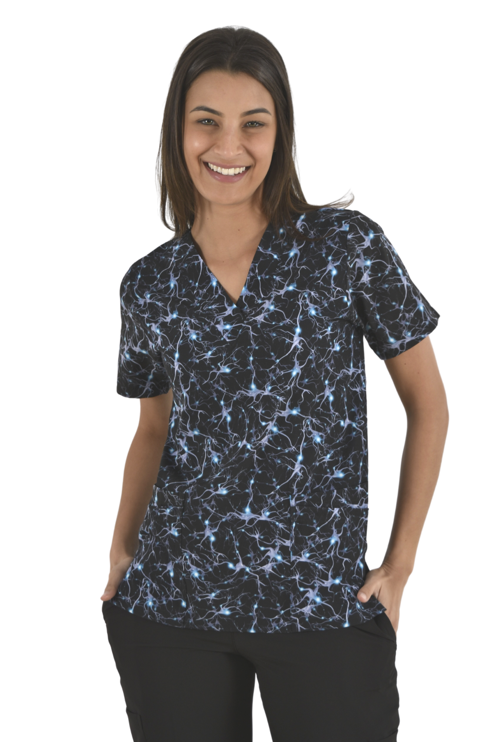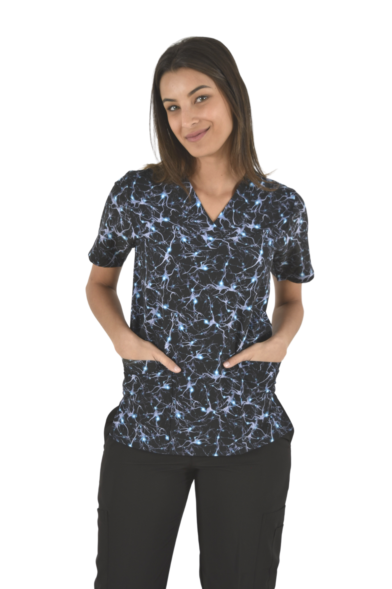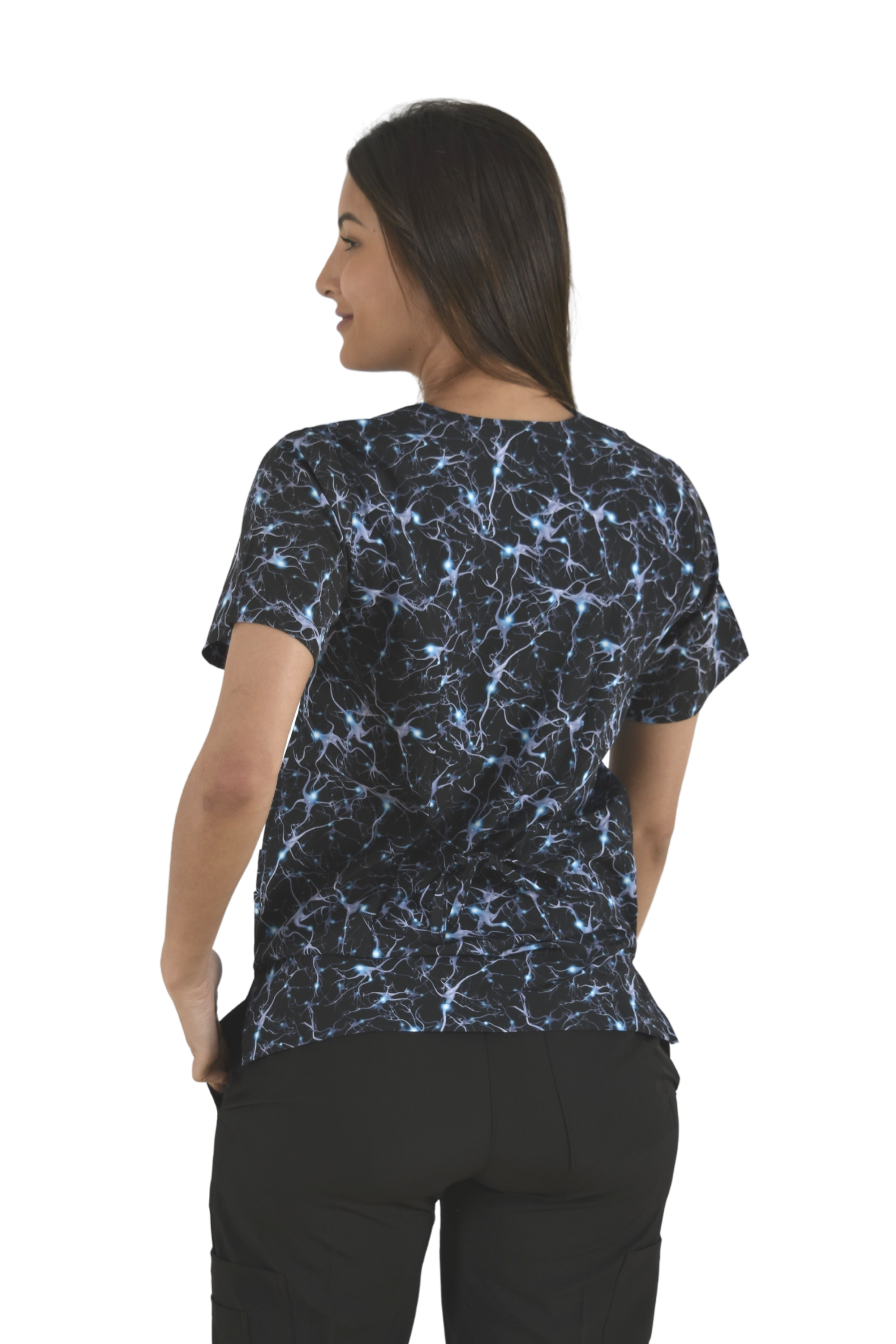 Filipina cuello en V con 4 bolsas en la parte delantera, aberturas en los costados para facilidad de movimiento y jareta en la espalda para un mejor ajuste.