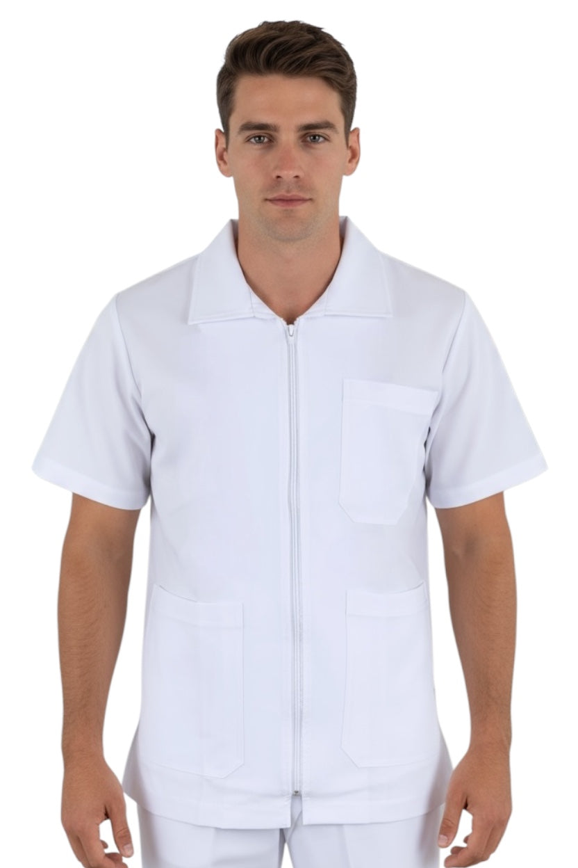 Filipina de cierre y cuello sport con 3 bolsillos en la parte de enfrente (2 en los costados, 1 en el área del pecho)
