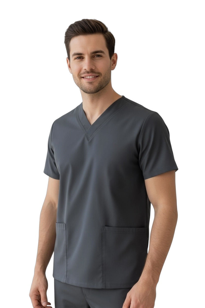 Filipina en cuello "V" corte regular con 2 bolsillos en la parte de enfrente.